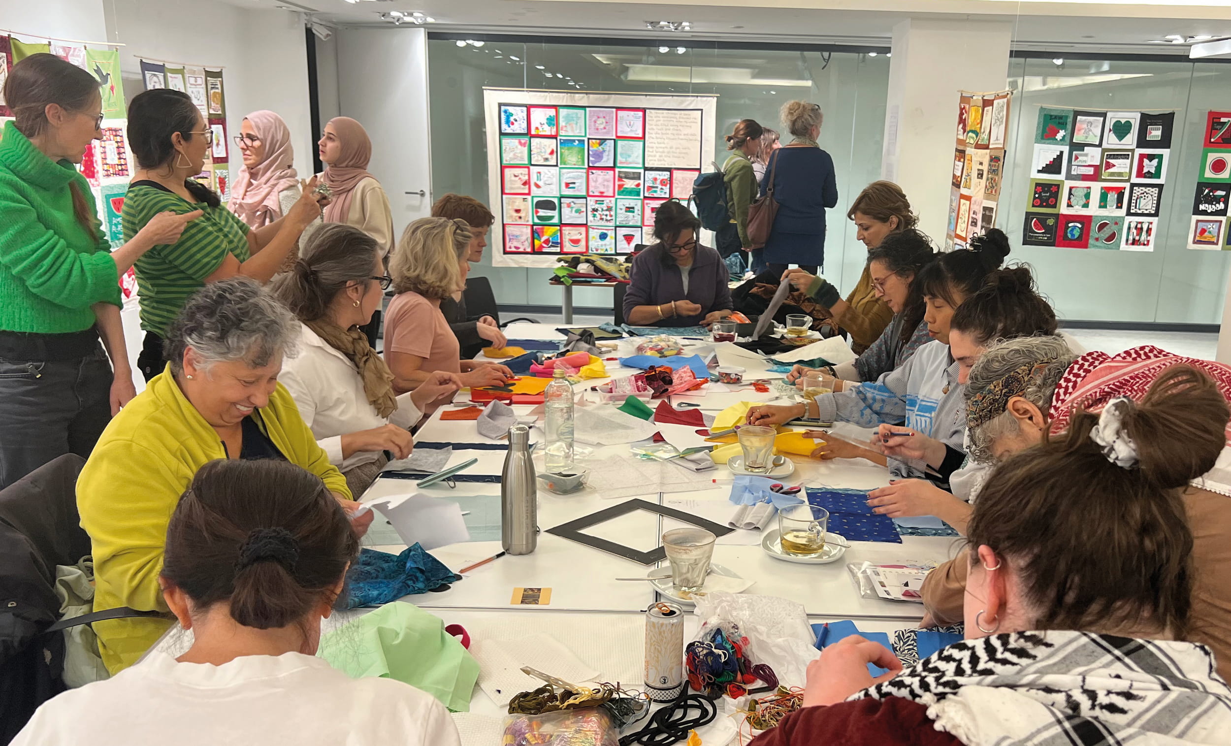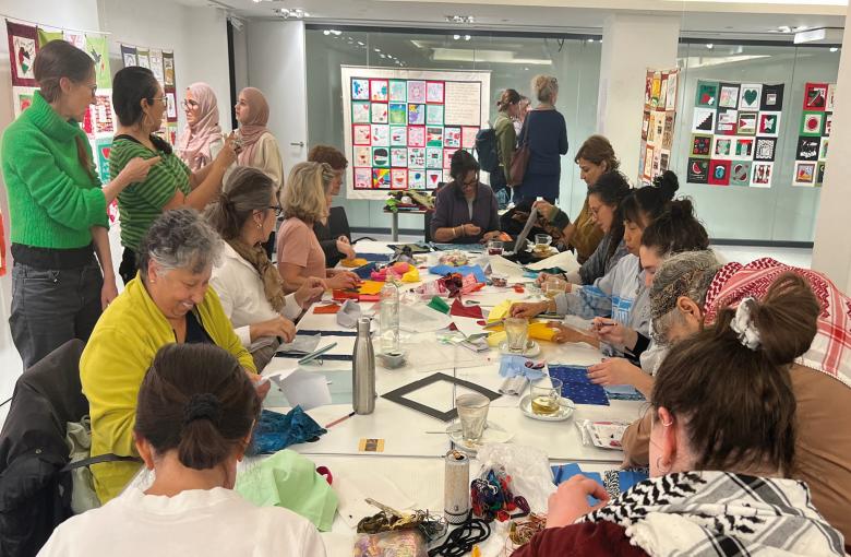 We invite you to join our creative workshop to make a square to be included in the memoral quilt naming and honouring the children killed in Gaza. During this workshop you will design and make a decorative square in remembrance of an individual child using the beautiful and versatile techniques of appliqué, fabric collage and embroidery. No previous experience is needed, and all guidance and materials are provided.